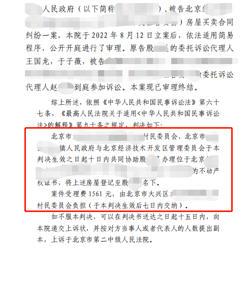 王國龍援引法律,有理有據的論述,得到了法官的支持,最終法官判決大興區亦莊某村村委會、亦莊鎮政府、開發區管委會于本判決書生效之日起十日內共同協助殷先生辦理涉案房屋的不動產權證書,將上述房屋登記制殷先生名下。